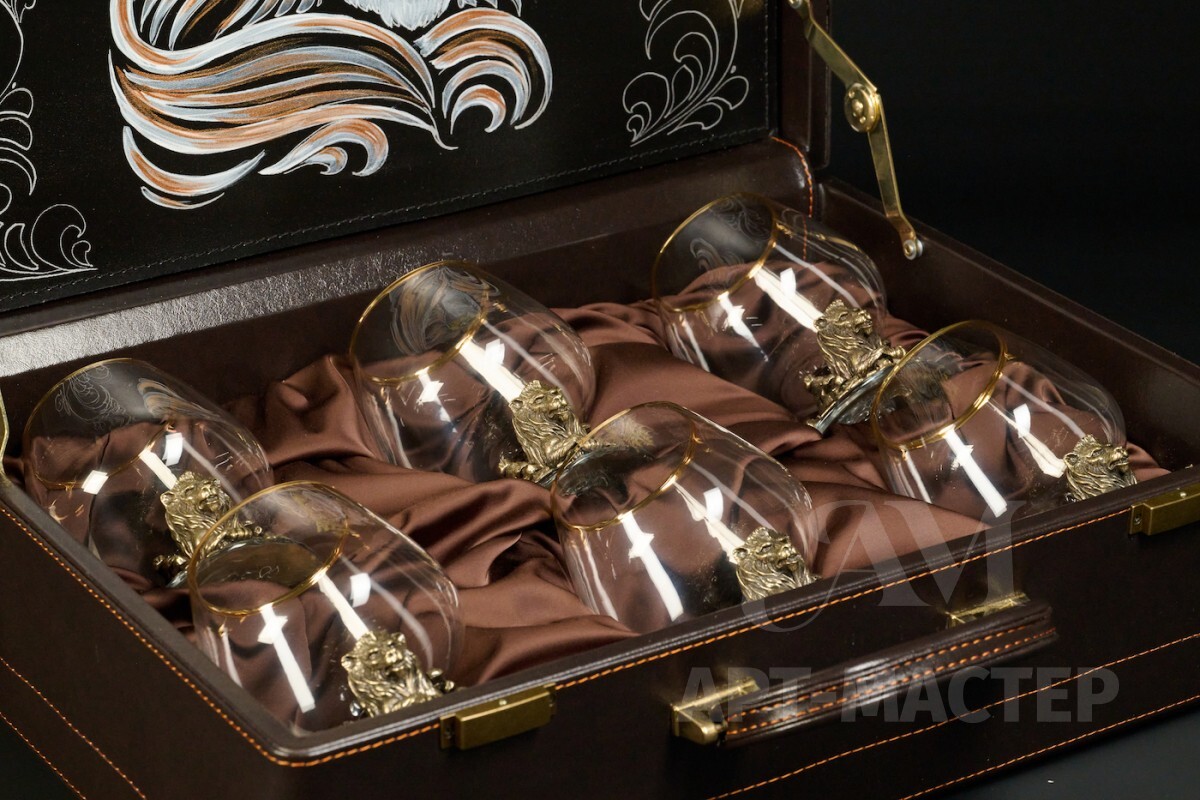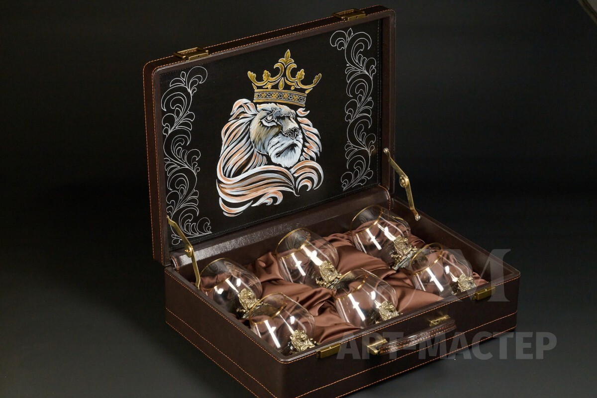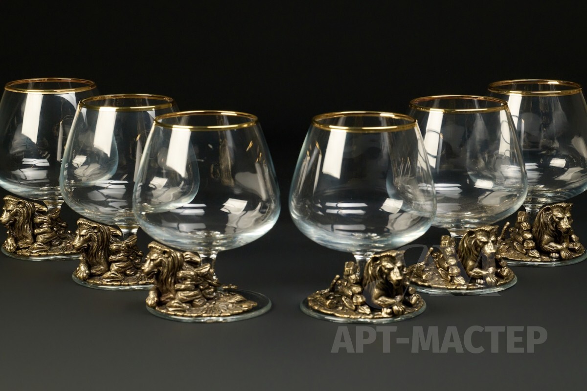 Бокал для коньяка "Лев VIP " эконом 6 шт. в подарочном футляре с художественным оформлением 430 мл