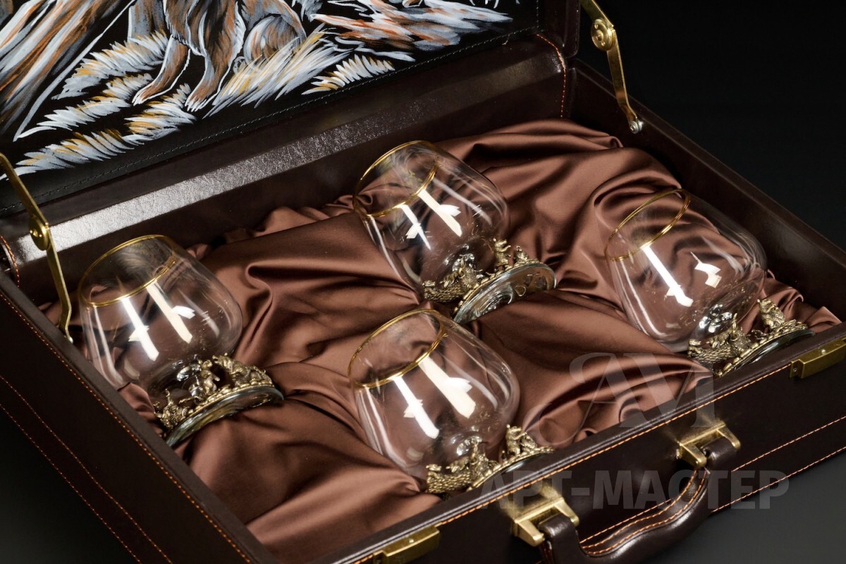 Бокал для коньяка "Утро в сосновом бору "эконом 4 шт. в подарочном футляре с художественным оформлением 430 мл