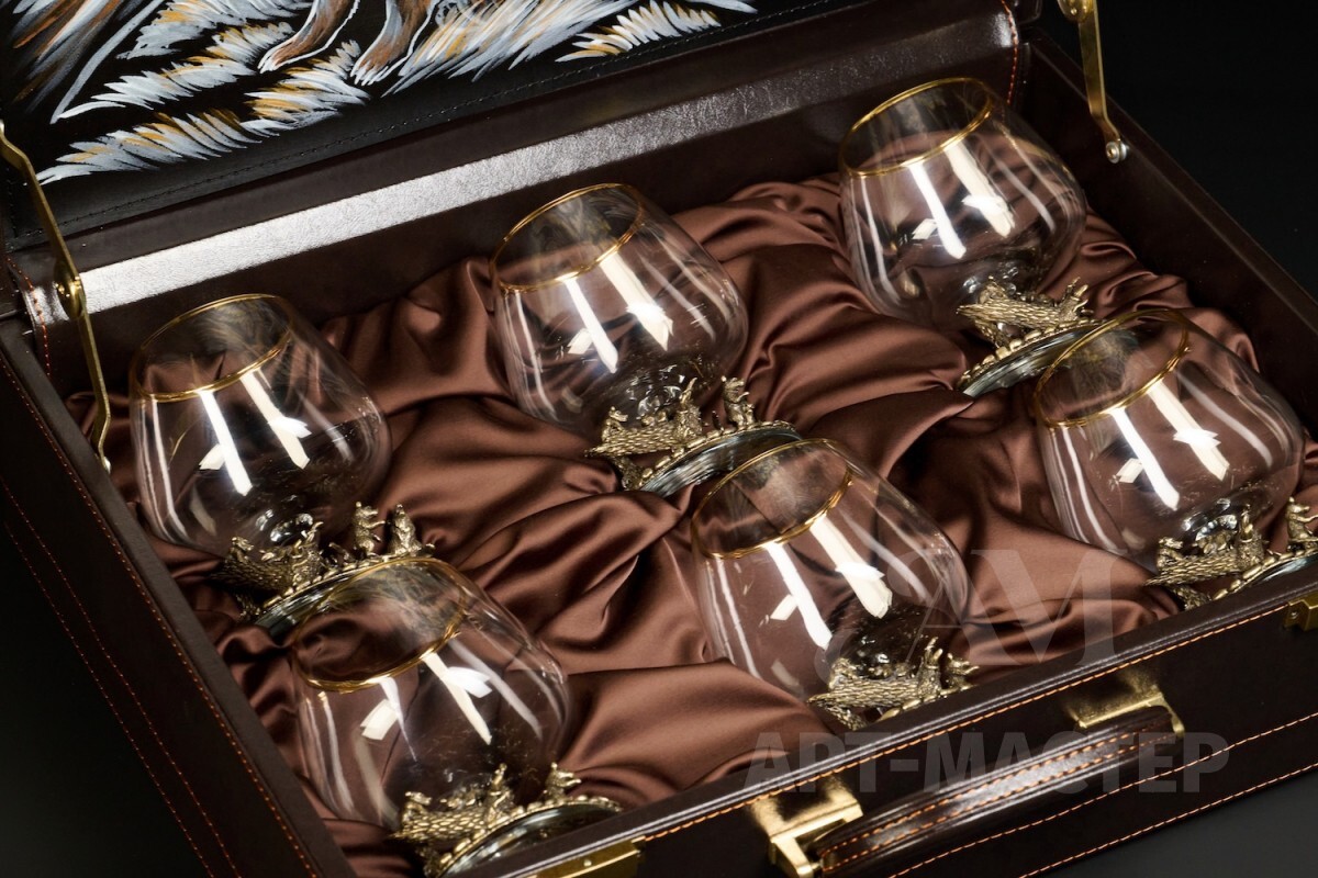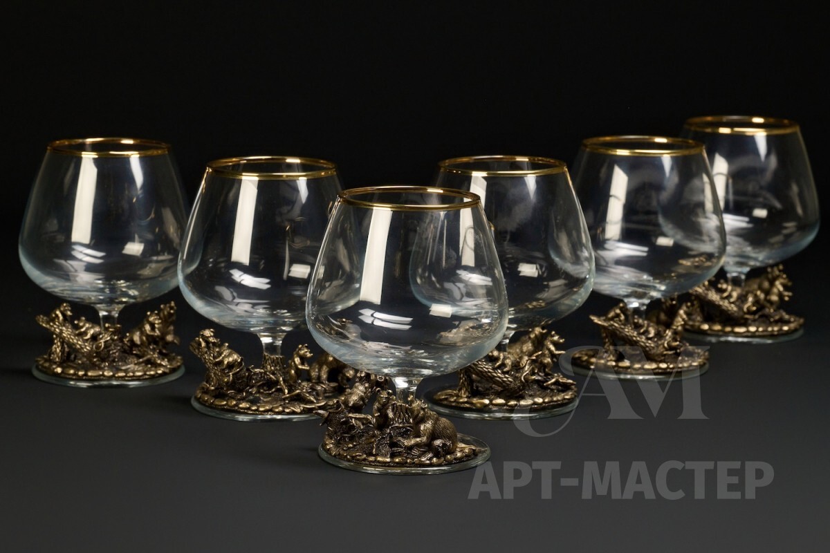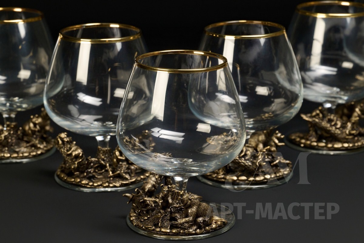Бокал для коньяка "Утро в сосновом бору "эконом 6 шт. в подарочном футляре с художественным оформлением 430 мл