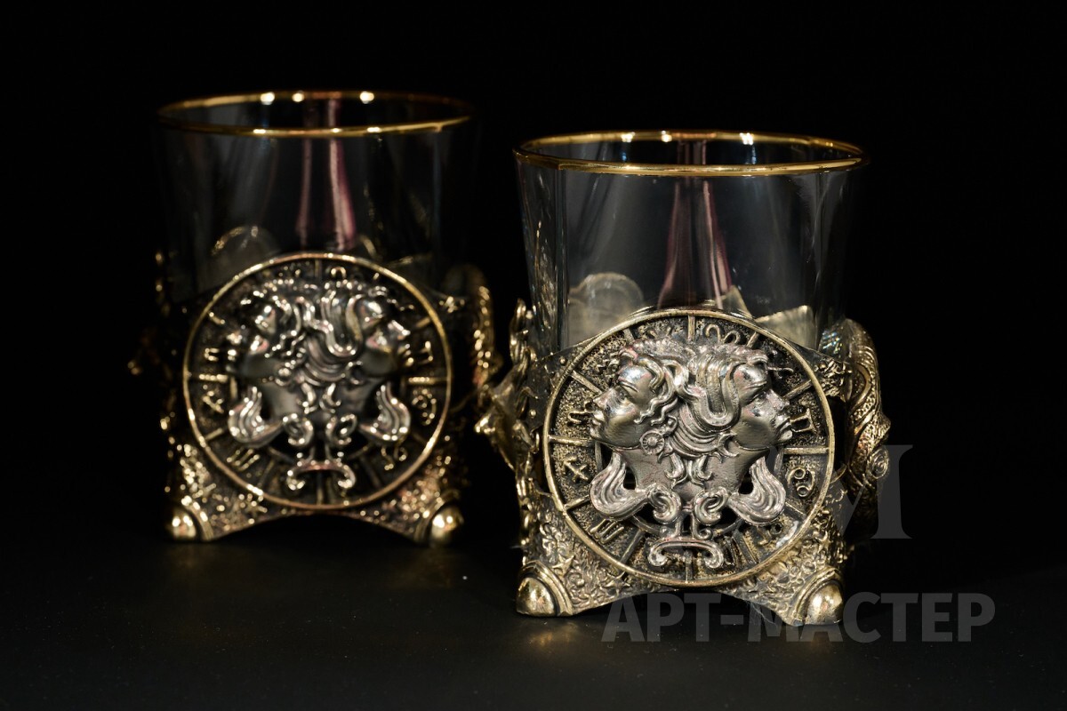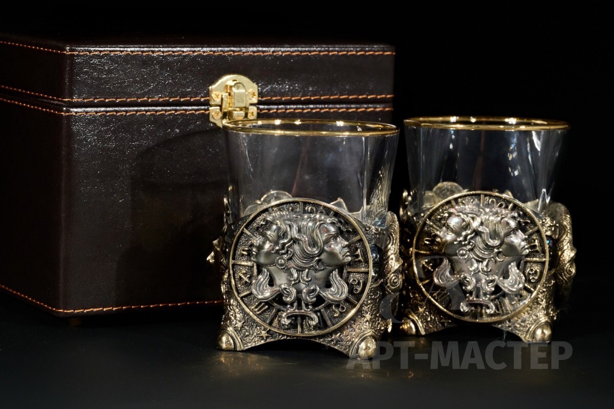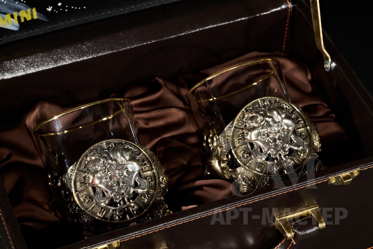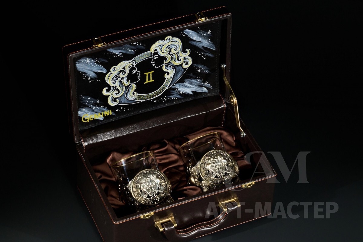 Стакан для виски Зодиак "Близнецы" 2 шт. в подарочном кейсе с художественным оформлением 310 мл