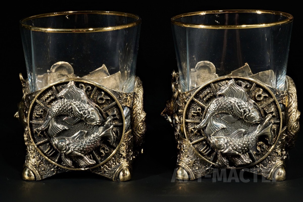 Закрыть Стакан для виски Зодиак  "Рыбы" 2 шт в подарочном футляре