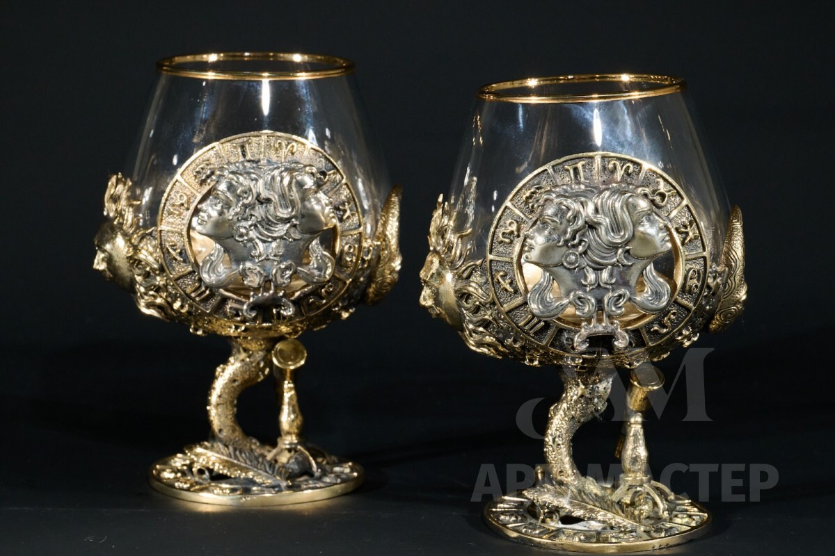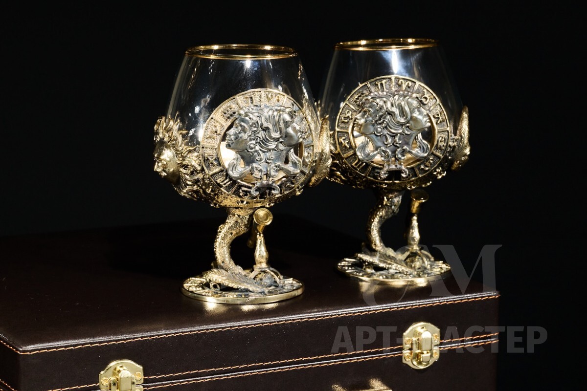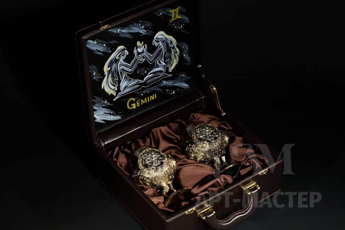Бокал для коньяка Зодиак "Близнецы" 2 шт. в подарочном футляре с художественным оформлением 430 мл