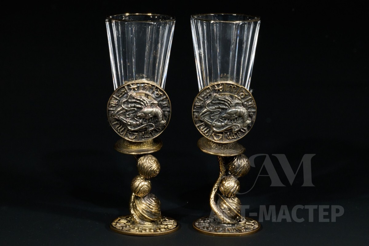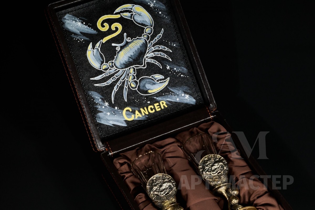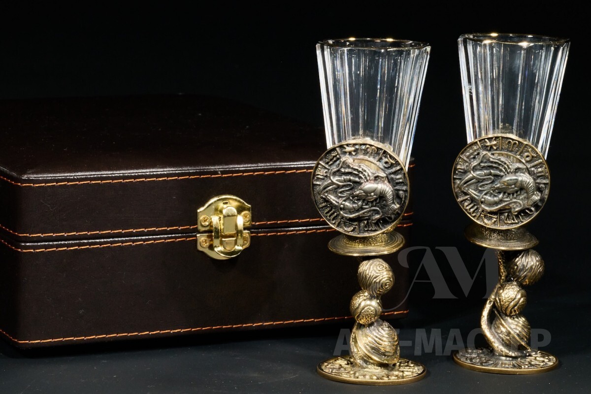 Набор лафитников для водки «Знаки Зодиака Рак» (2 шт.) в подарочном футляре c художественным оформлением 50 мл