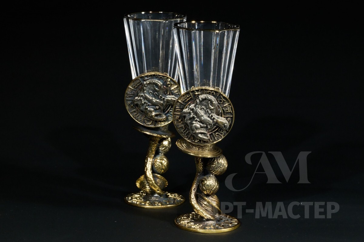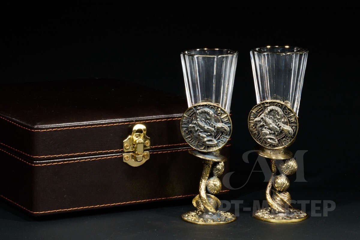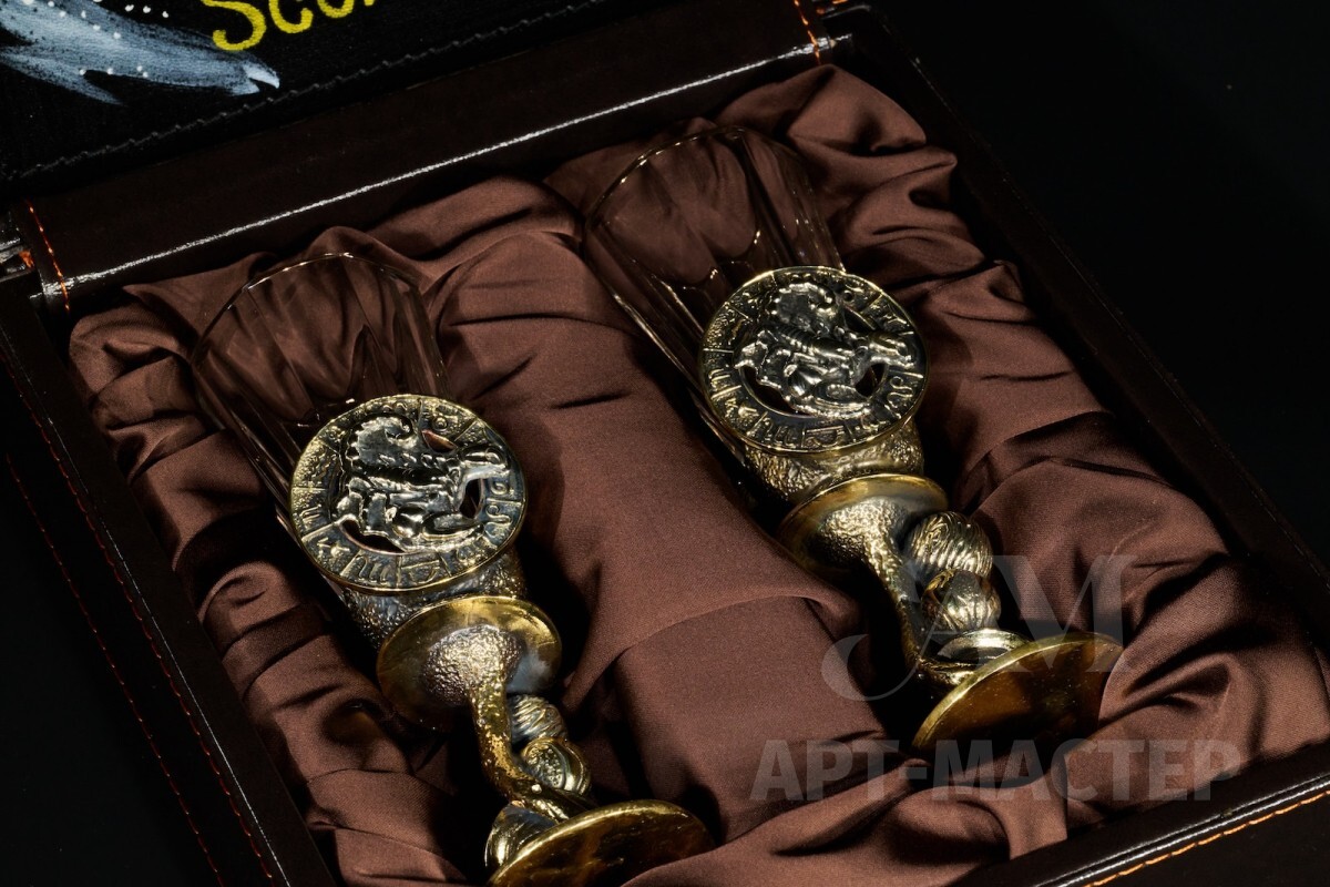 Набор лафитников для водки «Знаки Зодиака Скорпион» (2 шт.) в подарочном футляре c художественным оформлением 50 мл