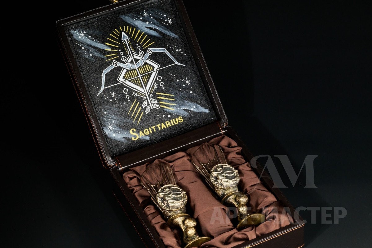 Набор лафитников для водки «Знаки Зодиака Стрелец» (2 шт.) в подарочном футляре c художественным оформлением 60 мл