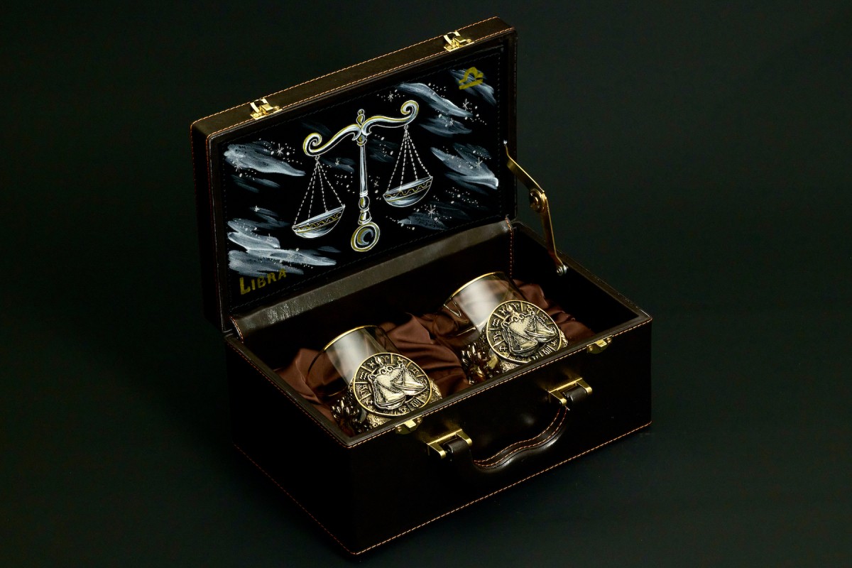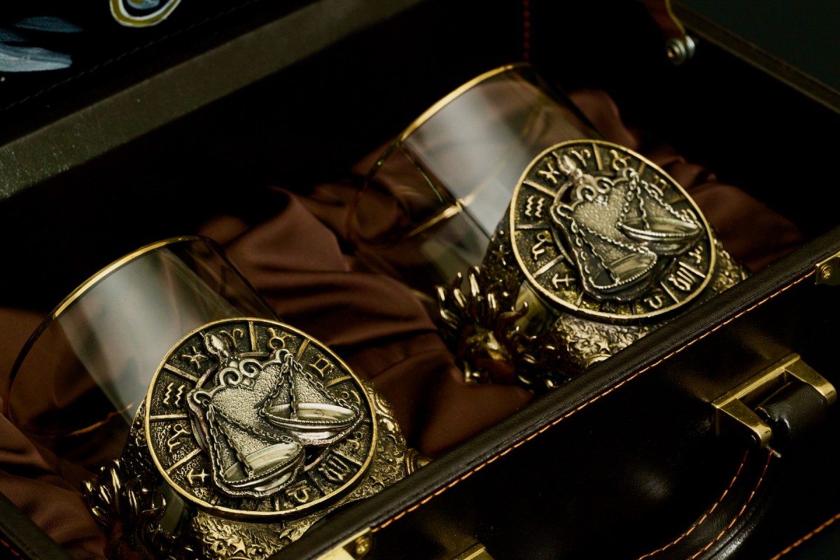Стакан для виски Зодиак "Весы" 2 шт. в подарочном кейсе с художественным оформлением 310 мл