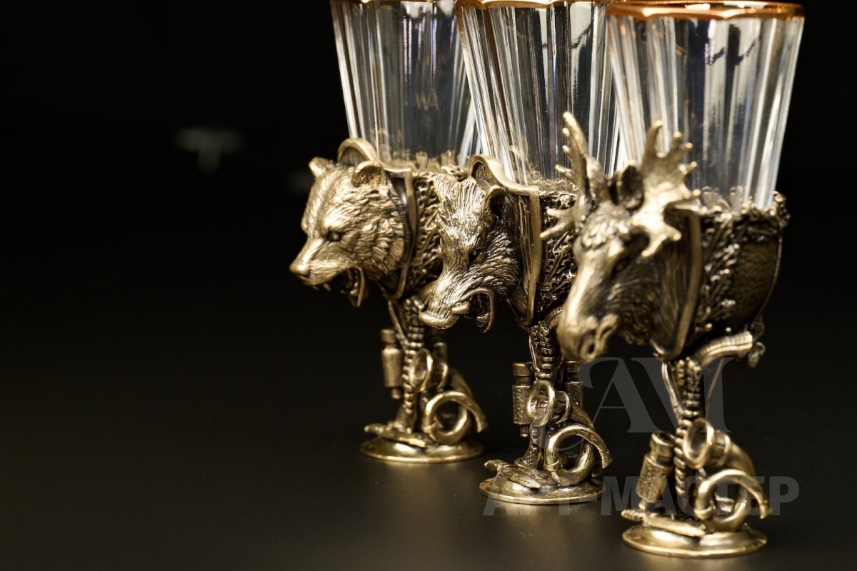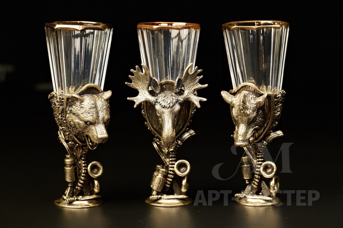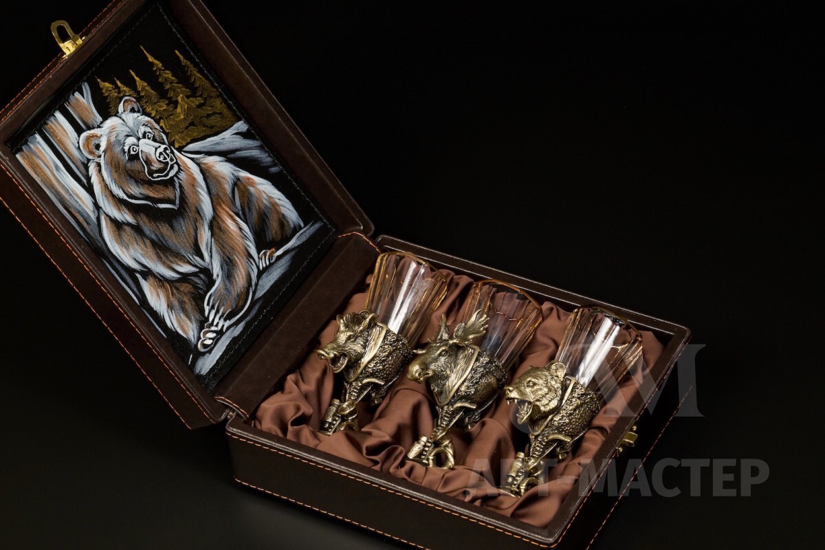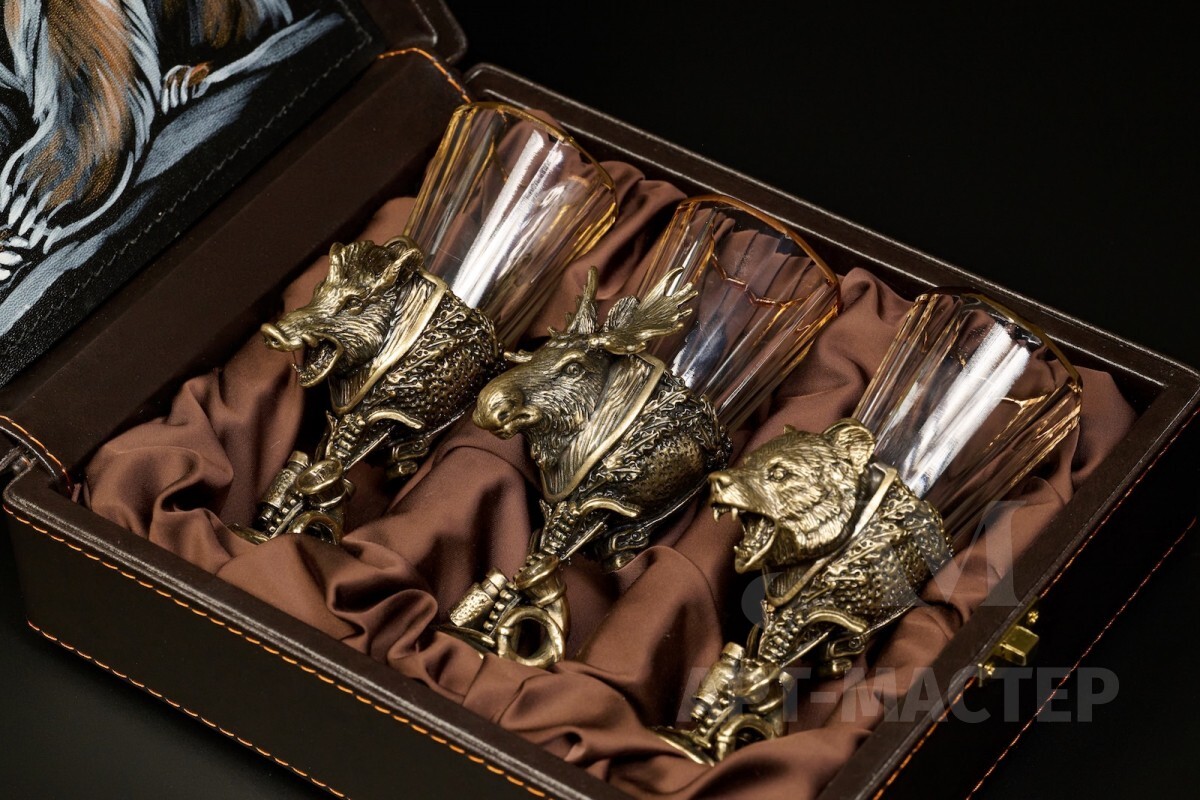 Набор лафитников «Охотничьи Трофеи" 3 шт. в подарочном футляре с художественным оформлением 50 мл