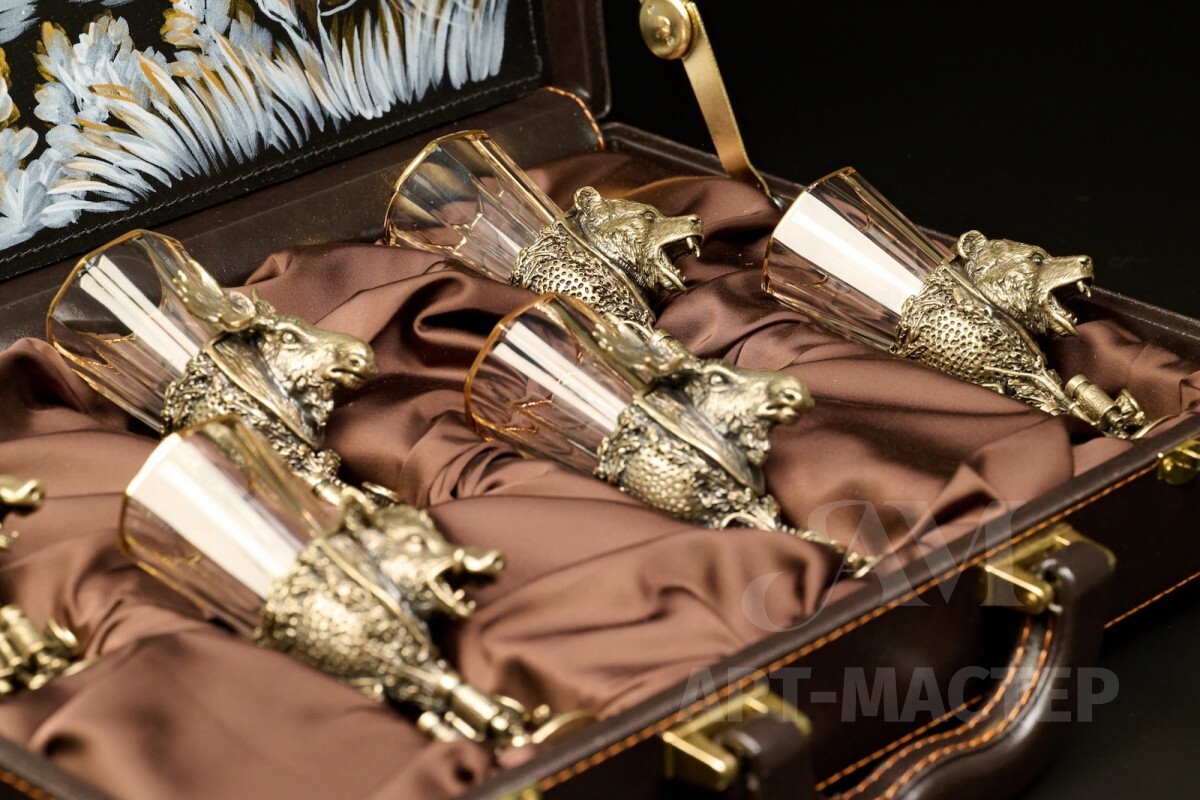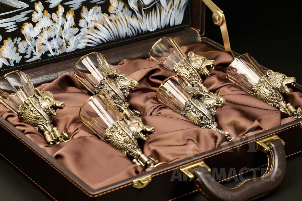 Набор рюмок-лафитников «Трофейная охота » (6 шт.) в подарочном футляре с художественным оформлением 50 мл